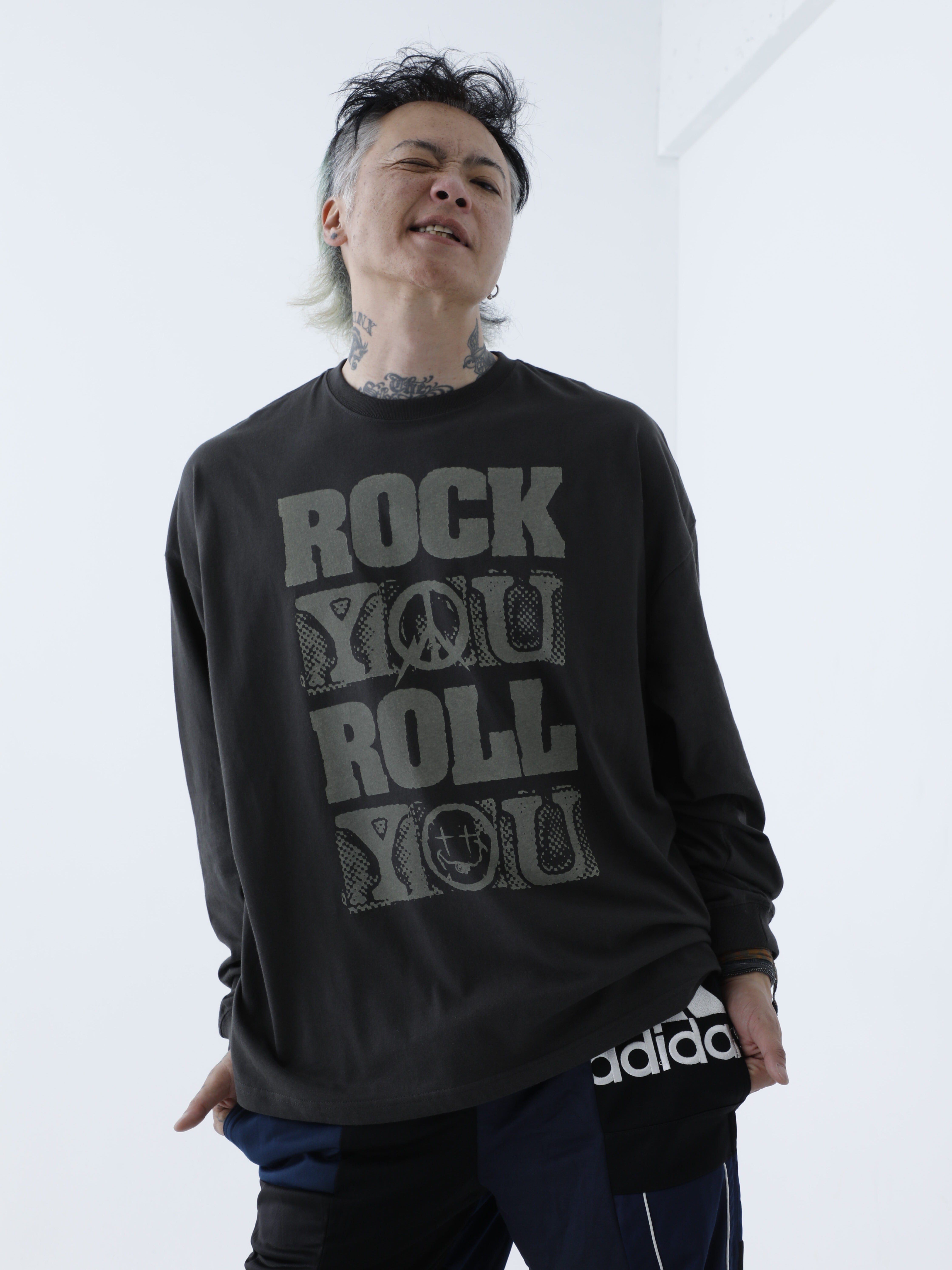 フロントに"ROCK YOU ROLL YOU"メッセージプリントをしたL/S BIG TEEです。