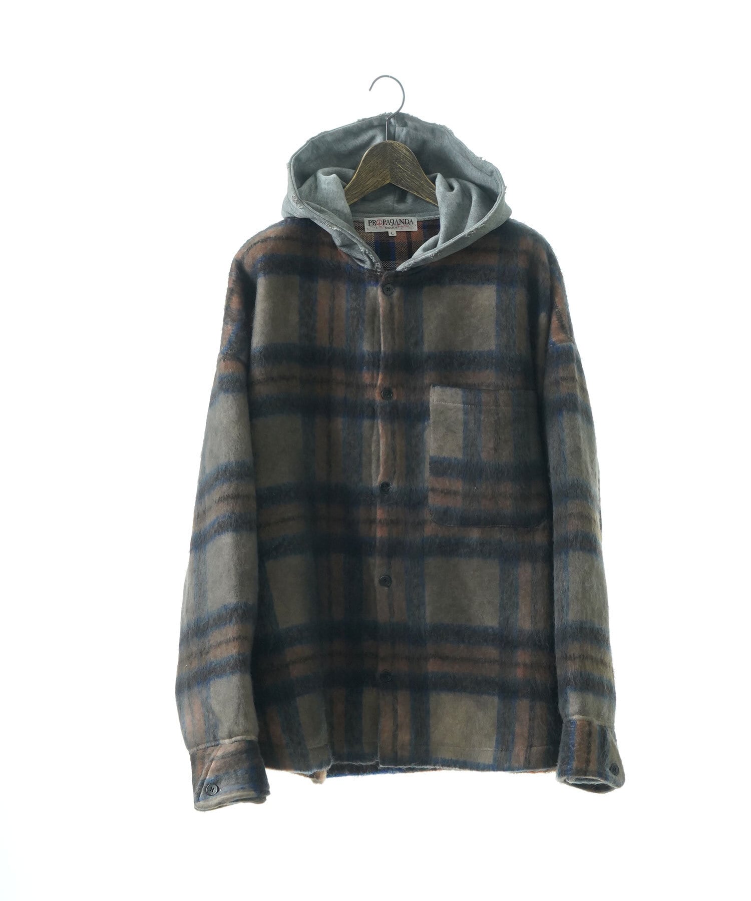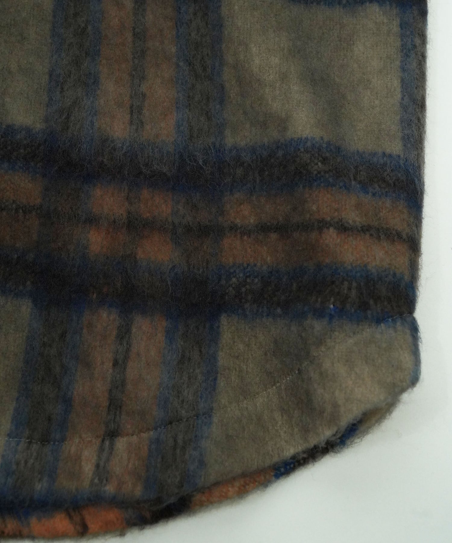 フード付きチェックシャツです。表面にUSEDブラッシュ加工を。